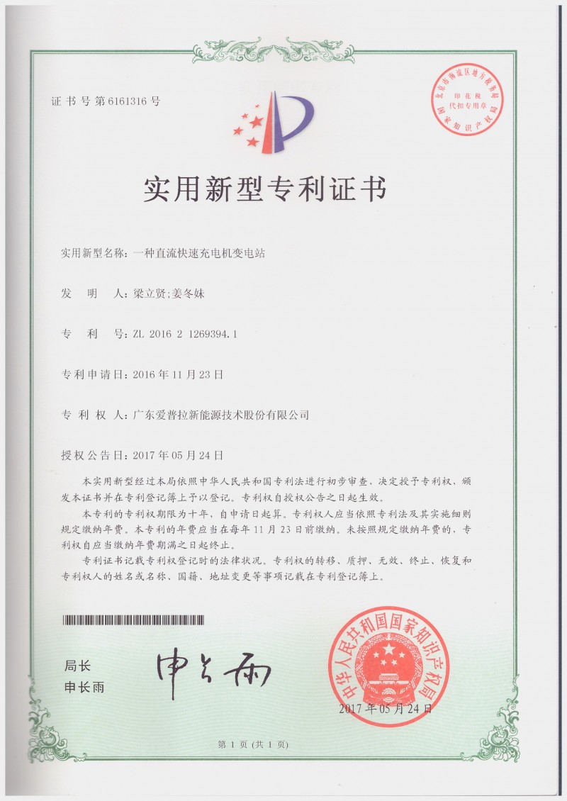 首頁 > > 實用新型專利證書