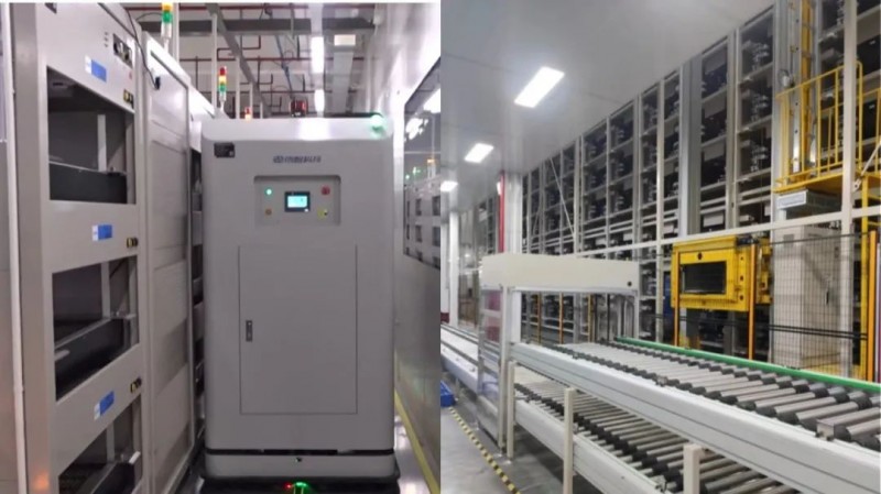 昝學彥介紹,由于消費類電池與動力儲能電池的屬性不同,消費類電池大多使用單柜多層,創智針對此定制了多層對接的分容AGV。動力儲能電池的尺寸重量較大,為了充分利用空間,部分企業會采用高層多層模式去擺放設備,假如使用AGV操作,效率與負載方面都難以達到理想效益,創智采用小型堆垛機方案,能通過完整的自動化輸送線到二封環節。