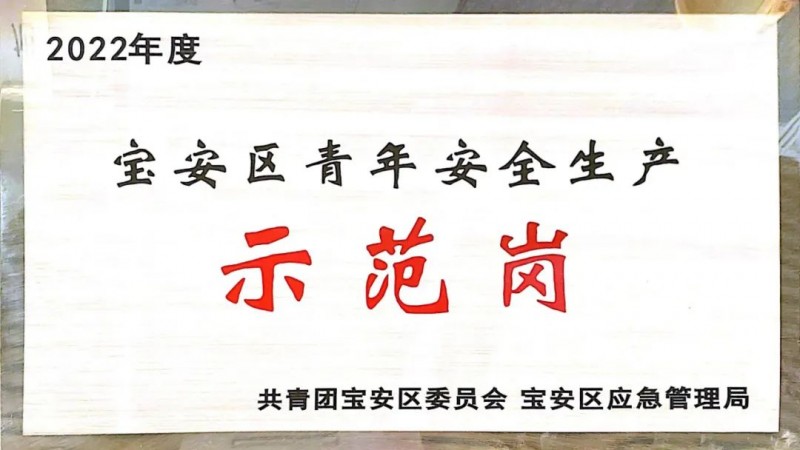 榮獲“寶安區青年生產示范崗”稱號,踐行安全為先,品質為王!