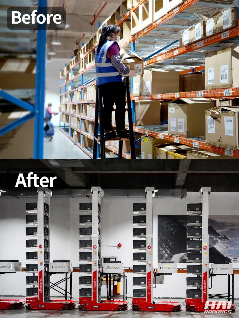 箱式倉儲機(jī)器人)解決方案中,HAIPICK A42箱式倉儲機(jī)器人的揀選準(zhǔn)確率高達(dá)99.99%,解決人工找貨難、易找錯的揀選難題。機(jī)器人將訂單命中的貨箱直接搬運(yùn)到工人手邊,工人只需根據(jù)可視化的操作指示就能輕松完成出庫作業(yè),大大降低了工人的作業(yè)難度,讓揀選作業(yè)效率大幅提高,助力利豐供應(yīng)鏈TO B業(yè)務(wù)提升了2.9倍揀選效率,TO C電商業(yè)務(wù)提升了2倍揀選效率。
