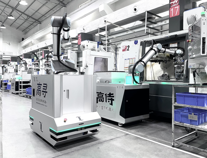 里工是一家擁有36年歷史的精密加工企業,內部的“未來車間”是一個24小時運作的離散型柔性化生產場所,里面配置了近百臺國際知名品牌的數控加工設備。2019年開始未來車間逐步升級智能化生產,數控加工設備上下料工序已由數十臺智能無人值守機器人來全程操控。2021年智能化改造繼續升級,未來車間相繼投入3臺高尋復合自主移動機器人用于生產環節中的物料流轉。高尋的靈活安全設計基于智能制造行業的新要求,與人互動并打造一個安全協同的工作環境。高尋裝載多重傳感器并深度融合使得它具備360度無死角感知能力,能主動繞障和停駛。在高尋投產后,車間一線員工花費在不產生直接經濟效益的物料運送的時間得到極大的縮減,人與生產的共生關系被進一步改寫且生產效率和生產品質得到更有效保障。