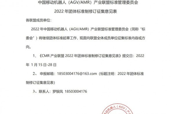關于征集國家標準《工業應用移動機器人調度系統數據接口要求》(征求意見稿)意見的通知