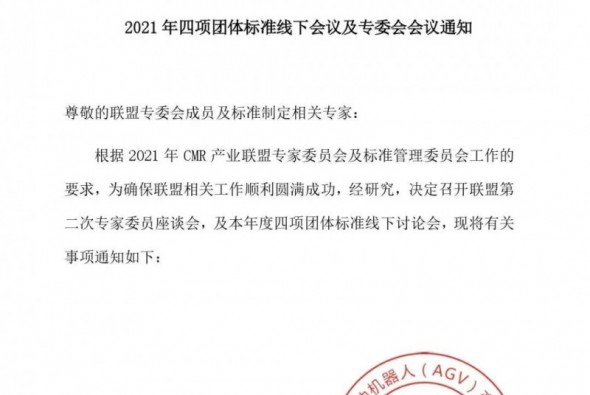 關(guān)于召開工業(yè)應(yīng)用移動機(jī)器人2021年四項團(tuán)體標(biāo)準(zhǔn)線下會議及專委會會議的通知