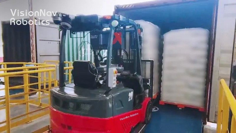在某化工企業實際應用時,無人叉車載貨進入狹長的車廂后,基于3D感知激光技術,在寬度為2.35m的車廂,貨物左右間隙小于30mm的環境內,完成兩列貨物18托的精準擺放,成功實現月臺自動裝貨,也是國內首個成功實現廂式貨車無人叉車裝箱案例。