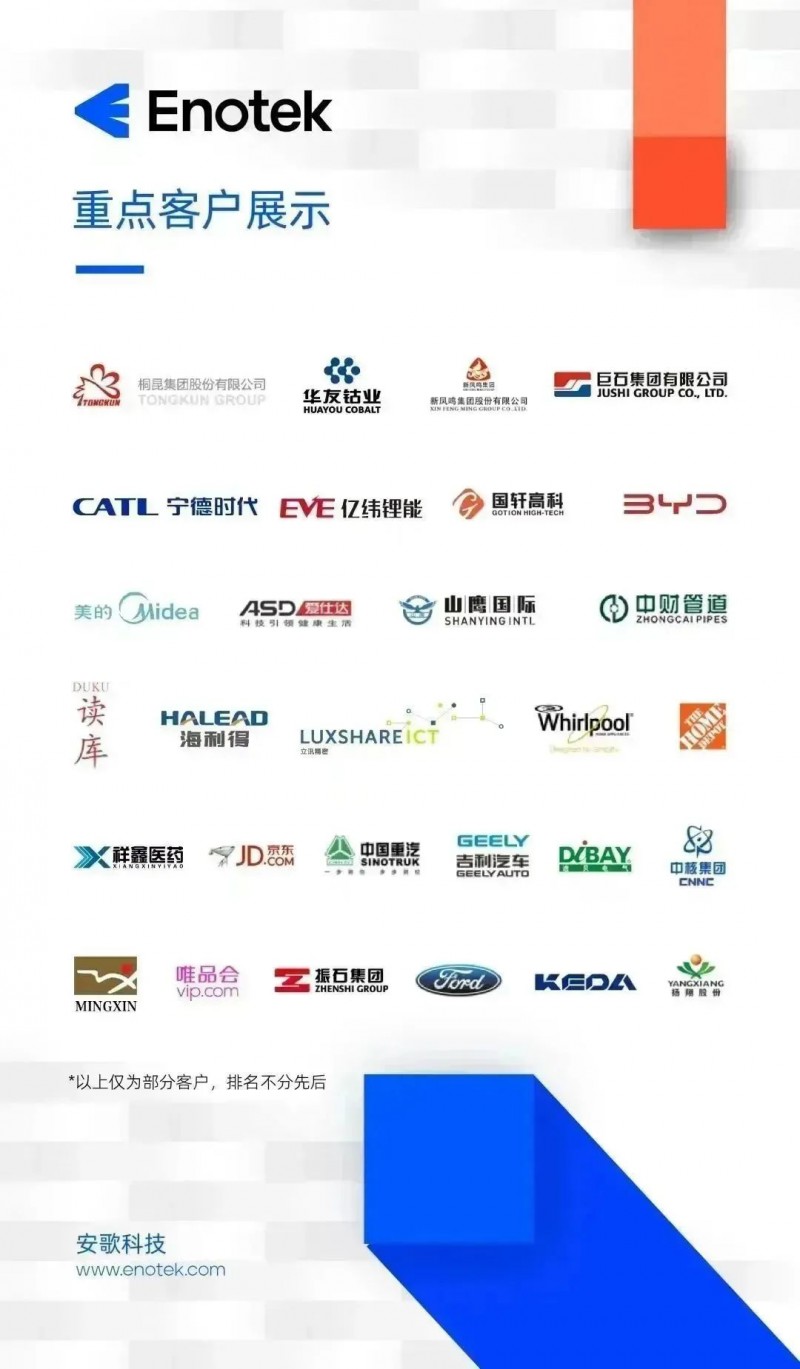 除此之外,安歌科技至今已為桐昆股份、中國(guó)巨石、中國(guó)重汽、國(guó)軒高科、比亞迪等化纖、玻纖、新能源、新材料、汽車零配件、造紙、電子電器、食品飲料等打造了100+案例,收獲了來(lái)自各領(lǐng)域頭部企業(yè)的認(rèn)可。
