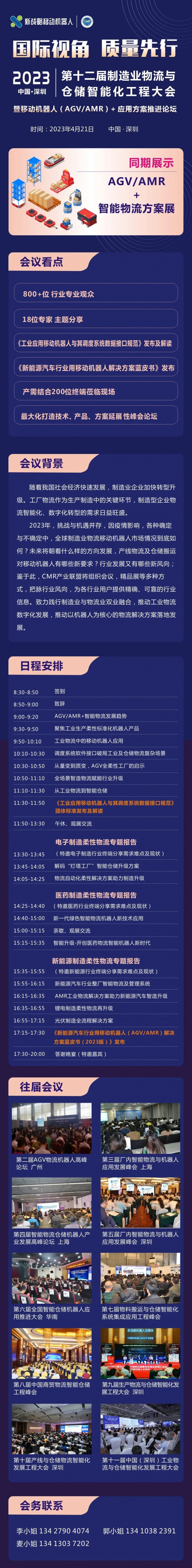 2023第十二屆制造業物流與倉儲智能化工程大會暨移動機器人(AGV/AMR)應用方案推進論壇