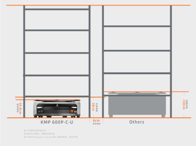 268mm,在同等600kg負(fù)載的移動(dòng)機(jī)器人中車(chē)身設(shè)計(jì)更緊湊,車(chē)身更靈動(dòng),可輕松進(jìn)出
