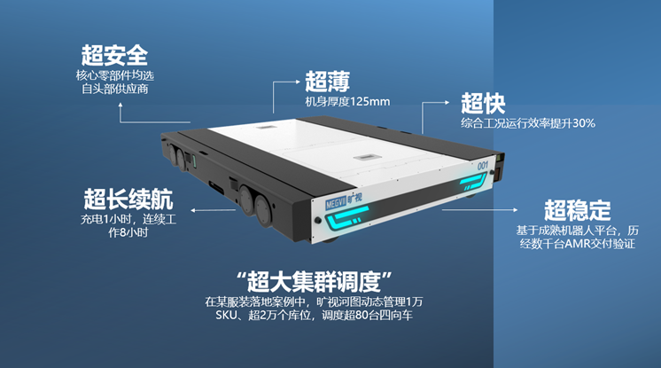 “CE認證是一種安全認證標志,是打開并進入歐洲市場的必備‘護照’。曠視機器人一直將安全性和可靠性貫穿于產品的全生命周期,目前曠視四向車系統已經應用于松下、公牛、贛鋒鋰業、中糧、萬緯冷鏈等眾多頭部企業的工廠和倉庫中。我們很高興獲得中國地區首張四向車系統CE全指令認證證書,讓更多全球合作伙伴和客戶,能夠選用曠視四向車及其配套產品進行倉儲的數智化升級。”