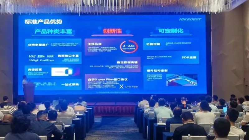 標準產品線帶來了突破帶寬限制的全新數據接口X over Fiber,及系列線陣相機、面陣相機和高光譜相機、采集卡等新品,特別指出了標準產品的創新性、可定制化、產品種類豐富等優勢。