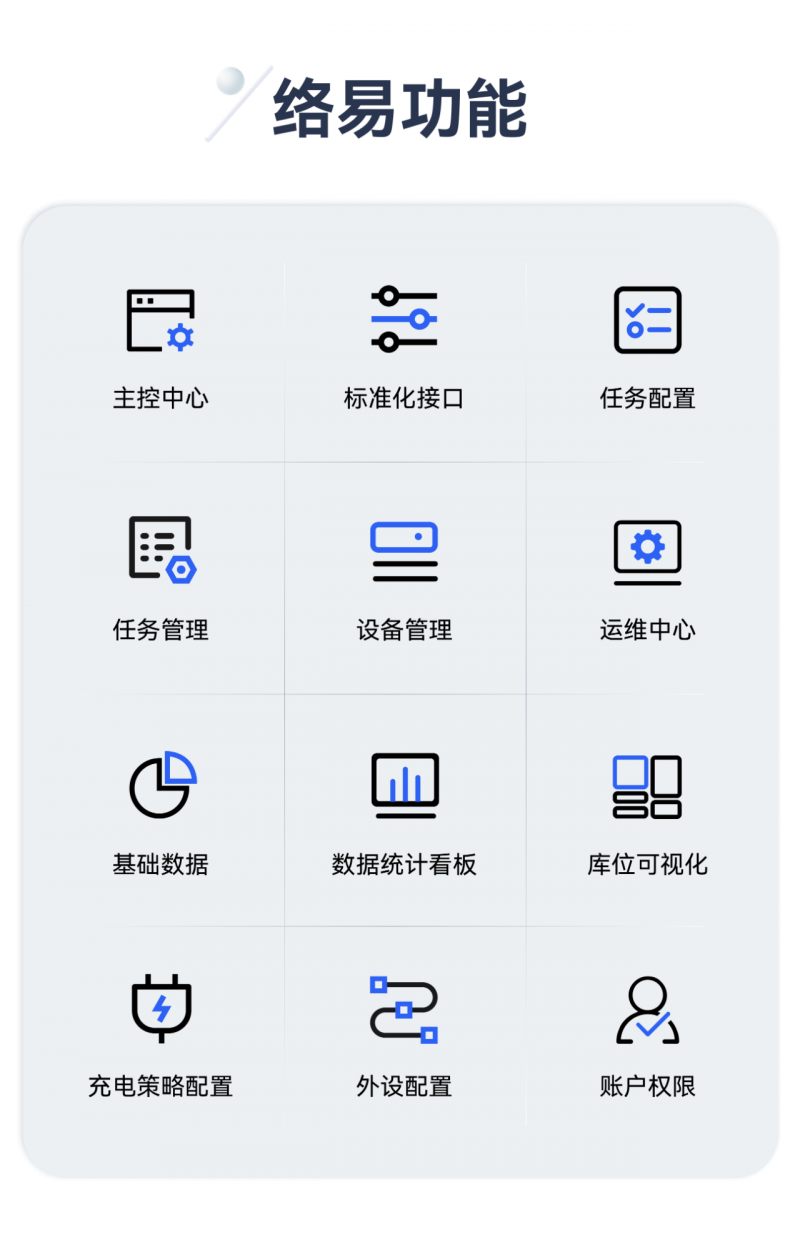答 絡易適配大部分需要用到AGV/AMR進行搬運的工廠、倉儲中小型場景。壹悟科技會為企業(yè)提供標準的上游系統(tǒng)接口(如WMS、WES、ERP),并提供常見的多品牌的設備選型清單,幫助企業(yè)完成線路規(guī)劃、設備接入調(diào)試及快速實施運維。