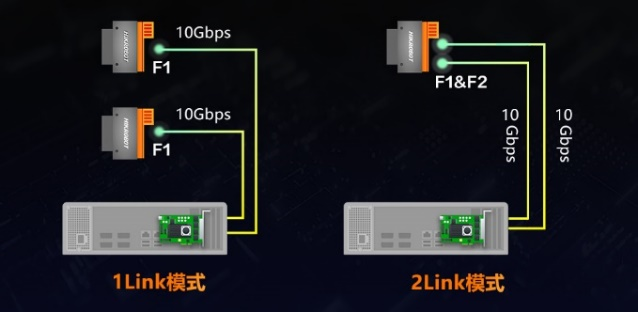 相機配套采集卡MV-GS1002F具備兩路X over Fiber接口,最高有效帶寬可達20Gbps,且可支持 1link和 2link 兩種工作模式。采用FPGA方案,降低CPU負載,解放PC運算資源,與高速線陣相機實現完美配合。