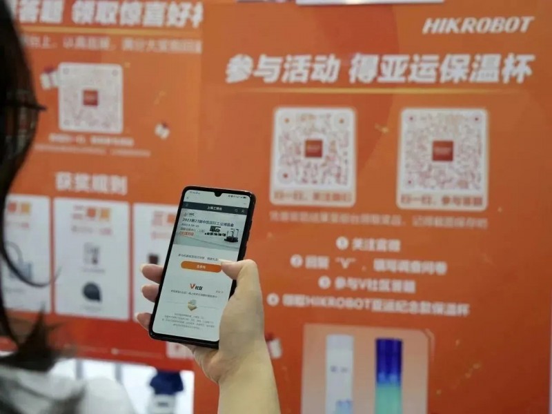 如果您還沒有盡興,那現場活動一定可以讓您滿載而歸,??禉C器人V社區是專為機器視覺開發者和技術愛好者打造的分享交流平臺,匯聚了上萬個機器視覺從業者,致力于幫助大家快速入門機器視覺行業,共建機器視覺生態。大家可以現場掃碼注冊V社區并參與展品相關的知識問答,贏取豐厚大禮,可不要錯過呦!現場除了掃碼答題互動,參與問卷填寫就能帶走亞運會專屬紀念保溫杯,禮品有限先到先得!