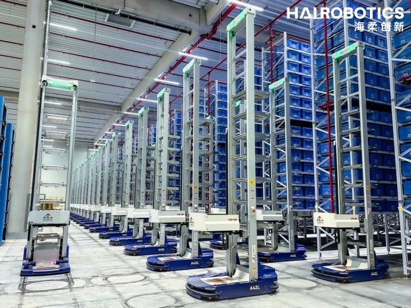 海柔創(chuàng)新的HaiPick System 2 超多形態(tài)混存揀選方案,包含箱式倉儲機(jī)器人(Automated case-handing mobile robot,簡稱ACR)、大載重潛伏式頂升機(jī)器人(Autonomous mobile robot,簡稱AMR)、HaiQ智慧倉儲管理平臺和HaiStation多功能工作站,可實現(xiàn)大中小件貨物同場存儲與一站式揀選,精準(zhǔn)地滿足谷倉德國新倉的需求。