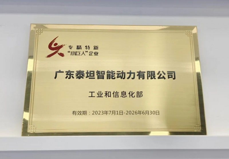 喜報!廣東泰坦智能動力榮獲國家級專精特新“小巨人”企業榮譽稱號