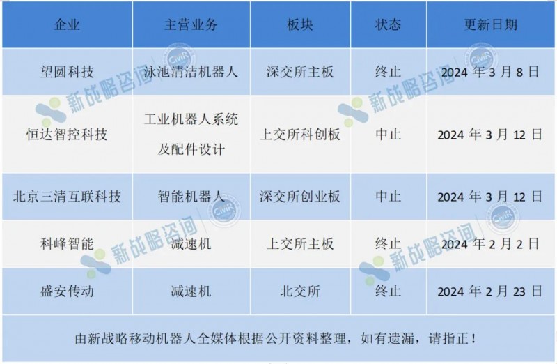據(jù)不完全統(tǒng)計,截止3月26日,2024年一季度已有5家機(jī)器人企業(yè)及產(chǎn)業(yè)鏈企業(yè)中(終)止IPO。在這股IPO冷空氣下,機(jī)器人企業(yè)該如何治愈IPO焦慮呢?