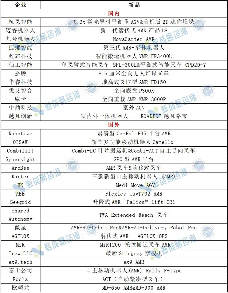 圖表:一季度國內外AGV/AMR企業新產品(根據公開信息整理,如有遺漏,請指正?。?br />