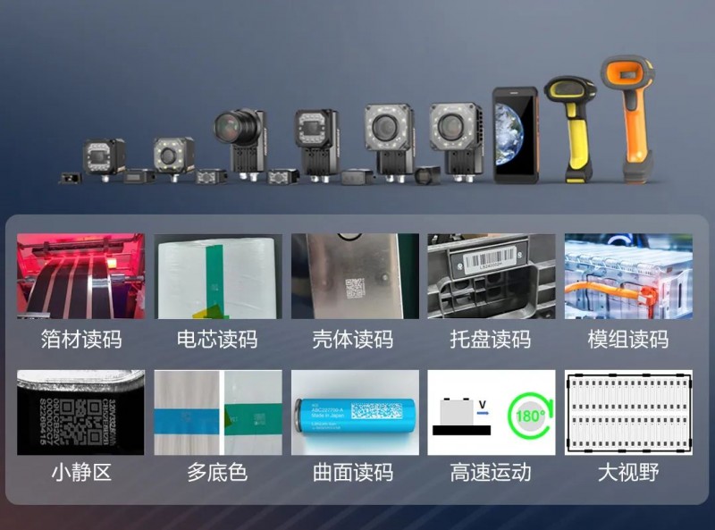 追溯鋰電生產過程是數智化解決方案的重要一環,海康機器人由此推出了豐富的智能讀碼產品輕松應對多底色讀碼、圓柱電池曲面讀碼、高速運動讀碼、大視野讀碼等復雜場景。