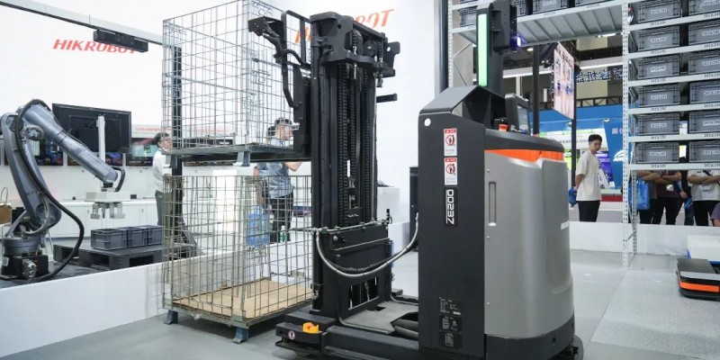本次展會(huì)展出的是海康機(jī)器人全新一代的前移式叉取機(jī)器人,前移門(mén)架的設(shè)計(jì),減少運(yùn)載空間,提高運(yùn)載速度。同時(shí)具備物料識(shí)別功能,可適配各種類(lèi)型載具。取放精度高,支持物料自動(dòng)堆疊和拆垛,提高作業(yè)效率。
