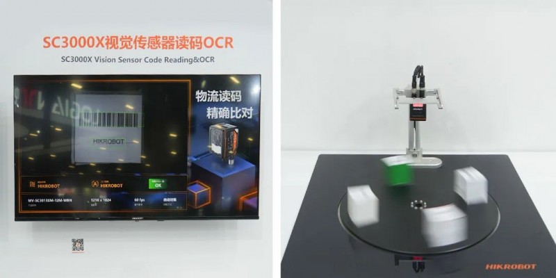 該相機(jī)集成像、算法、存儲(chǔ)、通信于一身,內(nèi)部嵌入了讀碼、有無(wú)、正反、測(cè)量、識(shí)別和計(jì)數(shù)等防錯(cuò)檢測(cè)算法,充分保證信息讀取的準(zhǔn)確性。現(xiàn)場(chǎng)展示SC3000X對(duì)物流面單碼和OCR的讀取情況,即便面單在轉(zhuǎn)盤(pán)上高速轉(zhuǎn)動(dòng),相機(jī)仍可穩(wěn)定讀取作業(yè),且對(duì)碼和字符進(jìn)行對(duì)比,是3C流通行業(yè)追溯信息的重要保障。