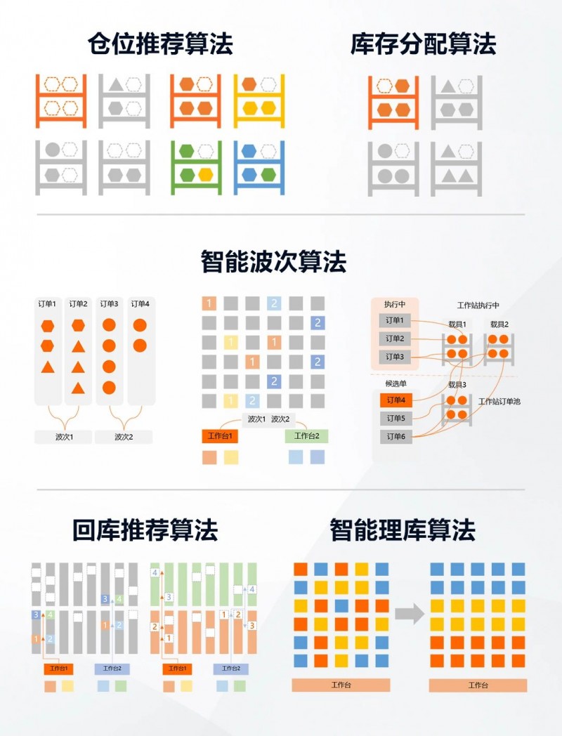 電商平臺、鞋服、生鮮冷鏈、醫藥等相關流通行業客戶共同有著對響應效率、準確率和柔性的極致追求。基于此,海康機器人打造iWMS-Logistics,在滿足庫存精細管理的基礎上,聚焦出庫效率提升。針對TOB、TOC、退貨等多業態訂單,iWMS-Logistics采用開班出庫、波次分播出庫,支持邊揀邊播、先揀后播的分播出庫模式。組波環節考慮出庫訂單優先級、截單時間、單多品、SKU相似度等因素。同時,支持按門店、按路線、按目的地等多種屬性分播,且支持集貨的暫存管理等。基于AI和深度學習,iWMS-Logistics融合五大智能算法。入庫環節倉位推薦算法,讓物料入庫合理分布;智能波次算法搭配庫存分配算法,考慮優先級、庫存分布、關聯性等因素,實現庫存最優分配和出庫站點均衡指派,助力日上免稅行實現日最大出庫15W行;智能理庫算法,在非作業時間段,由AMR智能理庫,使每個器具調整到最佳倉位,提高出庫效率。
