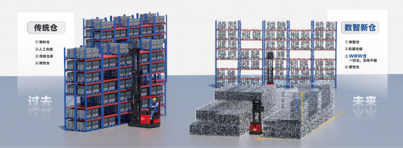 “即把所有的倉(cāng)儲(chǔ)進(jìn)行了場(chǎng)景化分割,分成了工位堆、自件堆、料籠堆、料架堆、貨架堆,利用我們的智能堆高車系列產(chǎn)品、智能前移式等產(chǎn)品,致力于讓傳統(tǒng)倉(cāng)庫(kù)的物料倉(cāng)、人工倉(cāng)儲(chǔ)變成數(shù)智倉(cāng)、機(jī)器倉(cāng)儲(chǔ),讓倉(cāng)儲(chǔ)更加柔性,讓一切可堆,無(wú)所不儲(chǔ)。”