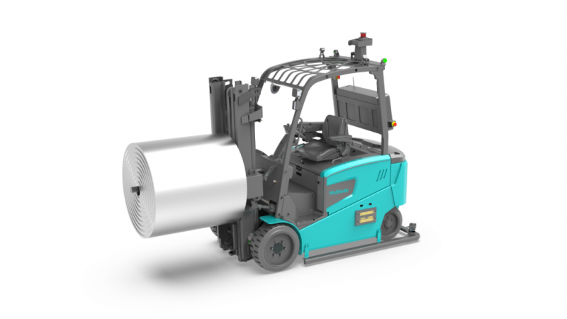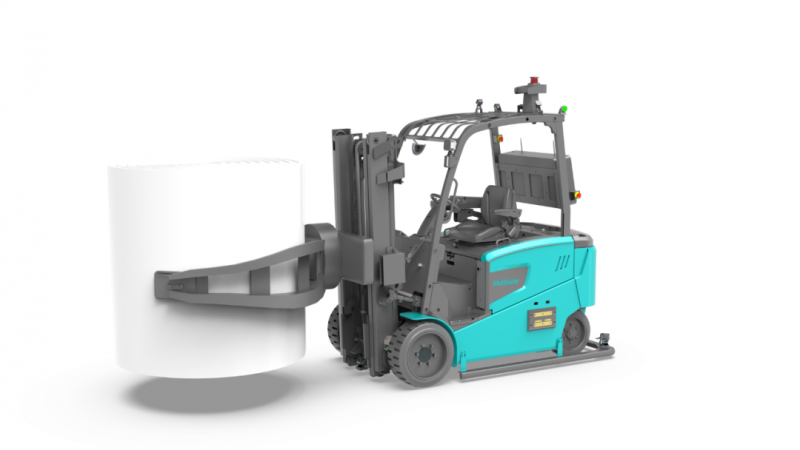 勱微E系列平衡重式無人叉車搭載弧形自適應夾具,夾緊物料后可連續(xù)360°旋轉(zhuǎn),便于交換作業(yè),廣泛用于造紙、紙箱、包裝、印刷等行業(yè)無托盤搬運。