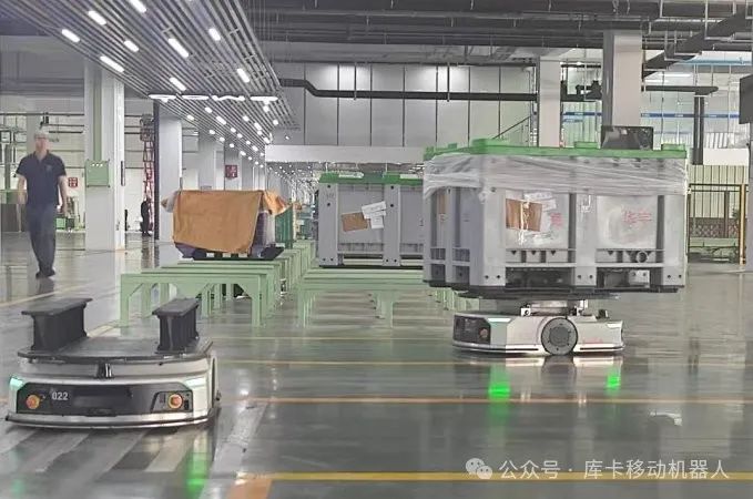 GMCC 美芝杏壇科技產業園引入43臺庫卡自主移動機器人KUKA AMR ink="#小程序://KUKACenter/QsT3kqGaHmILqQp" data-miniprogram-nickname="KUKA Center" data-miniprogram-type="text" data-miniprogram-servicetype="">KMP 600i,憑借出色的靈活性與自主性,覆蓋70條機加工產線和裝配產線。KUKA AMR承擔起無人化線邊物料搬運及上料重任,以往需要叉車工和物流配送員完成的工作,如今由它們高效執行,直接節省了10個人工。