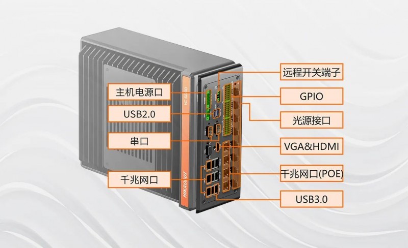VC5000系列集光源、千兆網(wǎng)口、POE 網(wǎng)口、視頻接口等多種接口于一身,從數(shù)據(jù)采集階段,到最終業(yè)務(wù)展示,實現(xiàn)一臺設(shè)備搞定一個視覺方案。