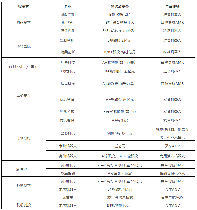 表:各大資本近年移動(dòng)機(jī)器人行業(yè)投資一覽(表中金額均為每輪融資總金額,僅為參考,不代表資方的實(shí)際投資金額)