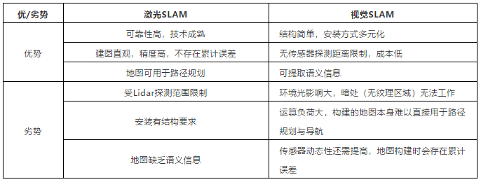 圖表4:激光SLAM和視覺SLAM優劣勢對比