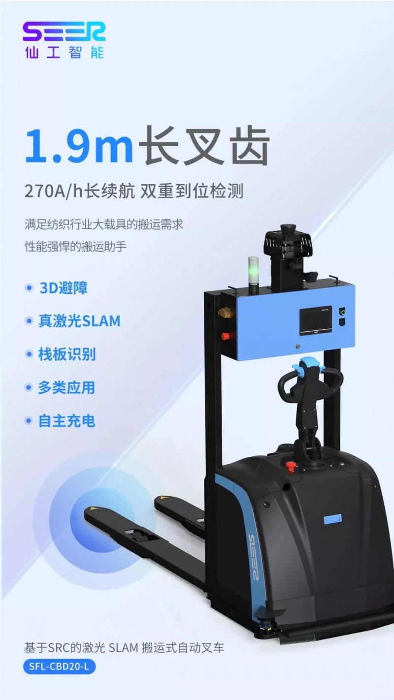在SFL-CBD20-S的基礎(chǔ)上,仙工智能升級打造了一款紡織行業(yè)專用大載具激光SLAM自動叉車——SFL-CBD20-L,該款產(chǎn)品具有長叉齒、長續(xù)航的特性,加配雙重到位開關(guān),能夠輕松解決紡織行業(yè)物料車裝載不規(guī)則的搬運(yùn)難題,一次性滿足大載具搬運(yùn)需求。
