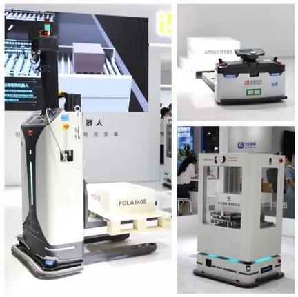 迦智科技智能無(wú)人叉車(chē)FOLA-1400-CDD(左),輕量級(jí)激光SLAM地面式自動(dòng)叉車(chē)AMBER 500(右上),高精度側(cè)叉物料取放機(jī)器人(右下)