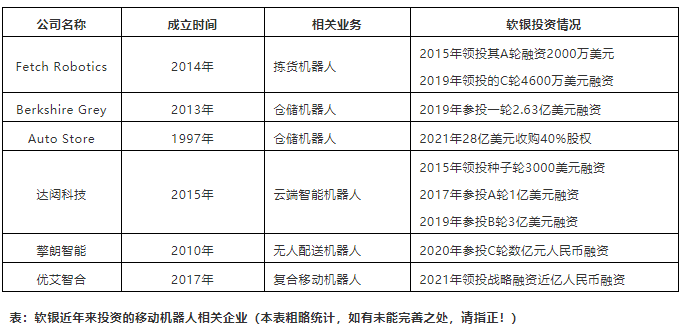 今年5月,軟銀領投了優艾智合新一輪近億人民幣融資,但這也只是軟銀在移動機器人領域近40億美元投資的冰山一角。近年來,從倉儲物流到送餐服務,軟銀在移動機器人行業頻頻出手。