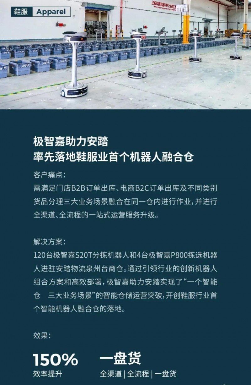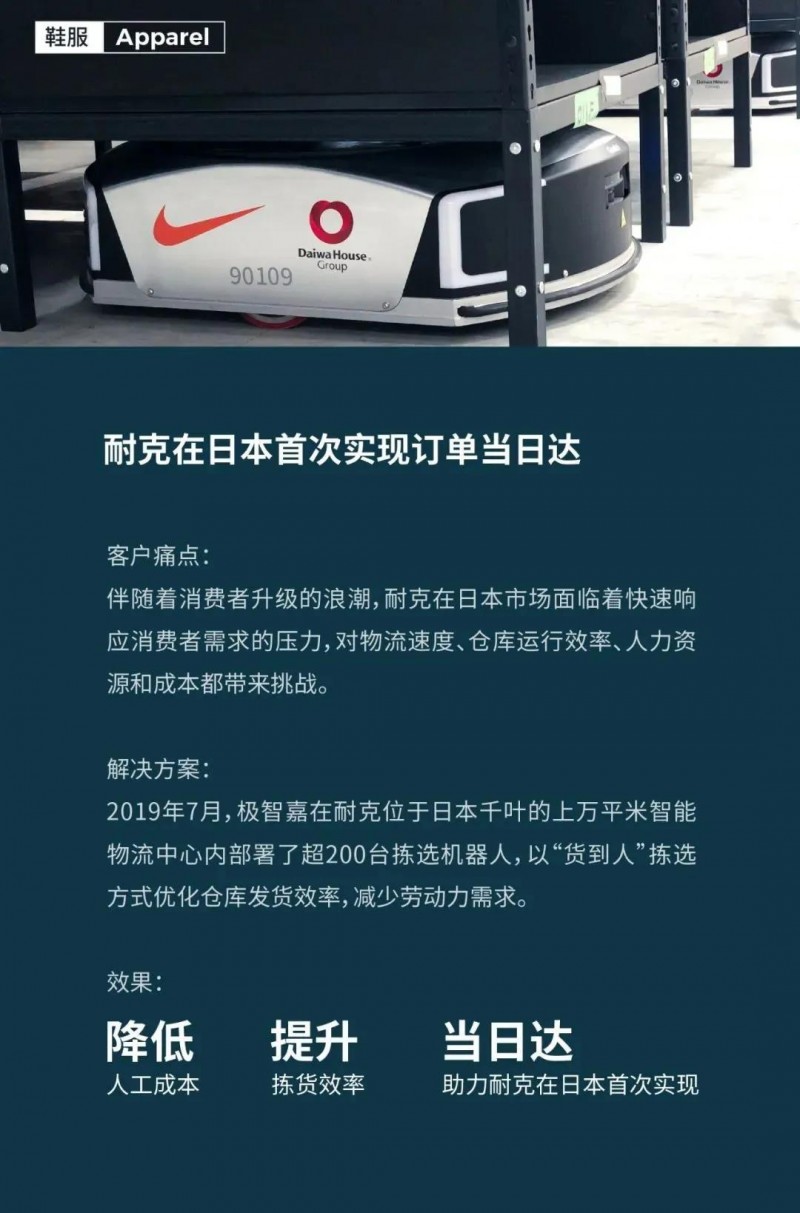 作為在鞋服行業(yè)擁有深厚行業(yè)積淀的智能物流方案專家,極智嘉已成功賦能耐克、安踏等行業(yè)龍頭品牌,實(shí)現(xiàn)物流智能升級(jí),不斷助力客戶以數(shù)字化、精細(xì)化的倉配運(yùn)營(yíng)管理,連接碎片化、多邊化場(chǎng)景,提升消費(fèi)者購物體驗(yàn)。