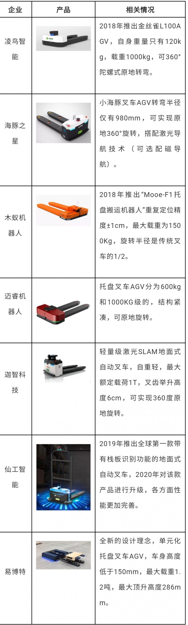 表:國(guó)內(nèi)部分緊湊型托盤叉車AGV廠商