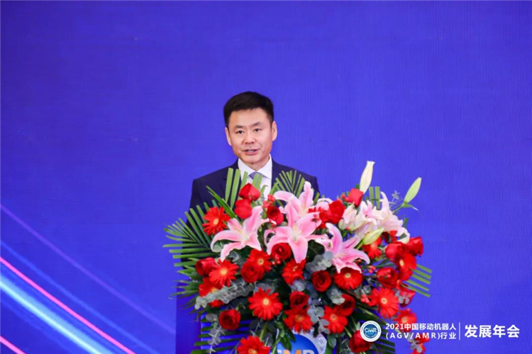 圖:中國(guó)移動(dòng)機(jī)器人(AGV/AMR)產(chǎn)業(yè)聯(lián)盟主席張雷致辭