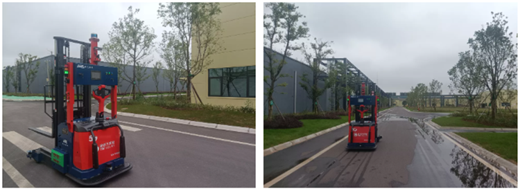 a.自主研發的完全室外環境(無需靶標)叉車式AGV