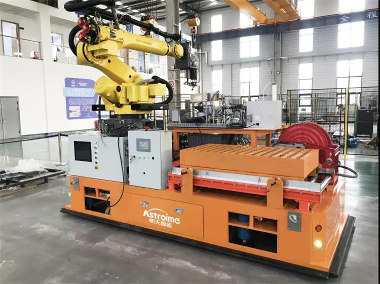 航天智造打造復(fù)合型重載AGV適用于風(fēng)電行業(yè)葉片根部雙頭螺栓的安裝與檢測(cè),實(shí)現(xiàn)了葉片自動(dòng)識(shí)別型號(hào)、自動(dòng)夾取螺栓、自動(dòng)進(jìn)行O型橡膠密封圈安裝和涂抹螺紋膠、擰緊作業(yè)、設(shè)備扭矩?cái)?shù)據(jù)互通等智能化。