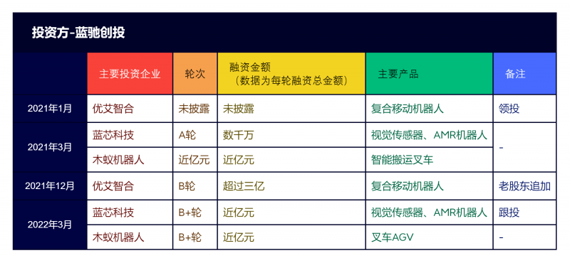 圖:移動機器人行業 藍馳創投融資事件一覽